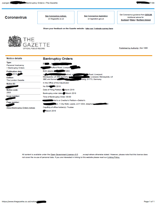 Mit Einverständnis einiger Mandanten veröffentlichen wir folgend einen kleinen Teil der erfolgreich durchgeführten EU Insolvenzen bei denen der Mandant die Restschuldbefreiung erhalten hat. Die Kanzlei Rieger und Partner ist stolz die einzige Kanzlei in Europa zu sein welche über eine derartige, umfangreiche Bilanz bei der Durchführung von EU Insolvenzen verfügt.